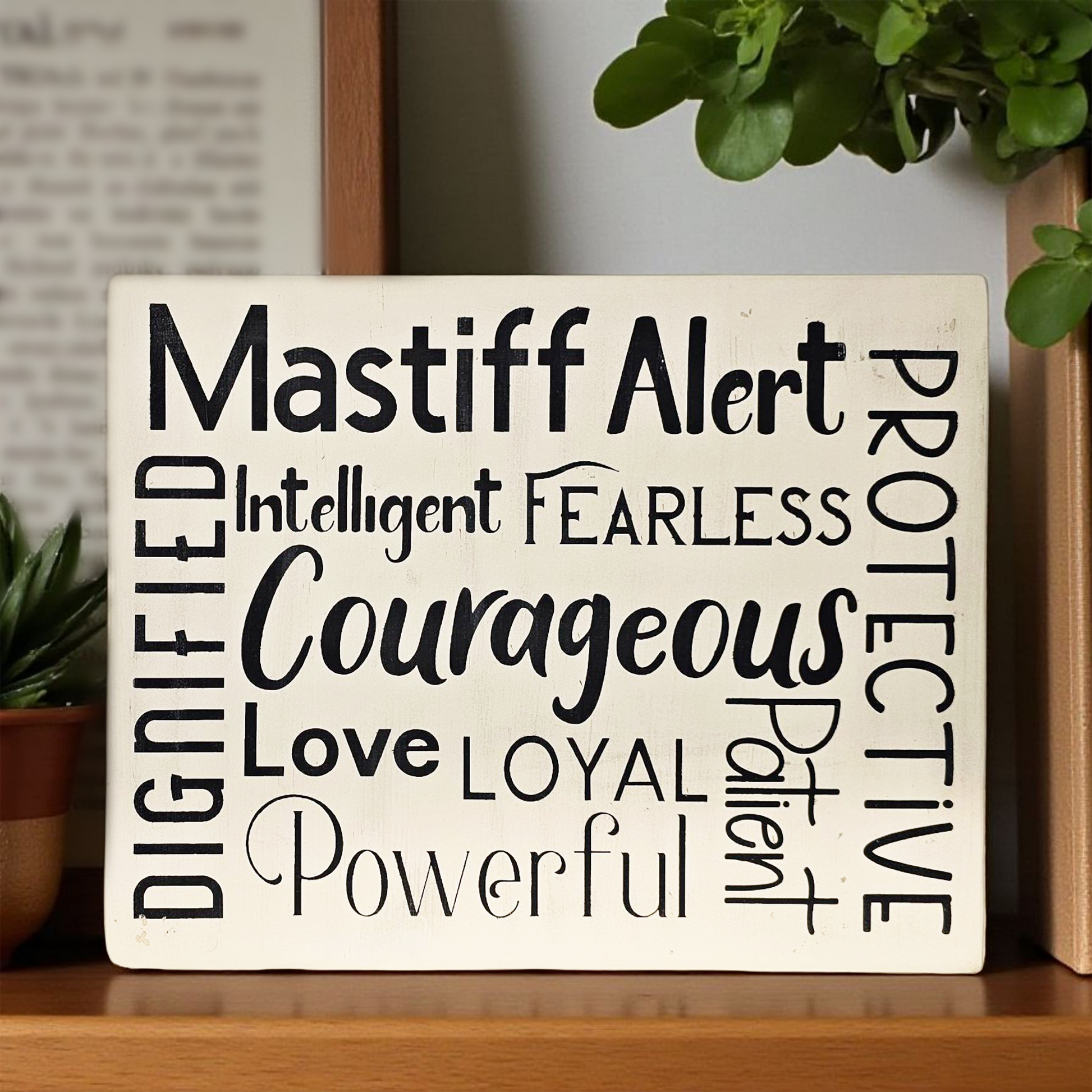 Celebrate the strength and gentle nature of the Mastiff with this handcrafted wood subway-style sign. Designed with bold typography and a rustic farmhouse finish, this sign proudly lists the traits that make Mastiffs such loyal and loving companions. It’s a perfect piece for Mastiff owners, dog lovers, or anyone who appreciates this noble breed.