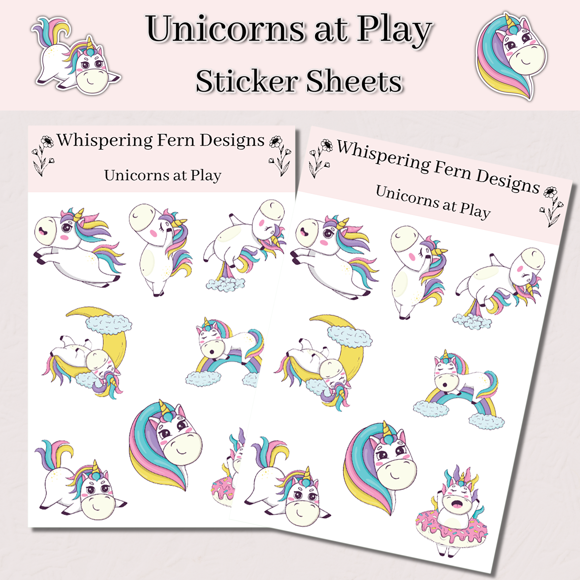 Unicorns at Play Sticker Sheet | Whimsical Unicorn Stickers | Planner, Scrapbook, Laptop, Journal Stickers